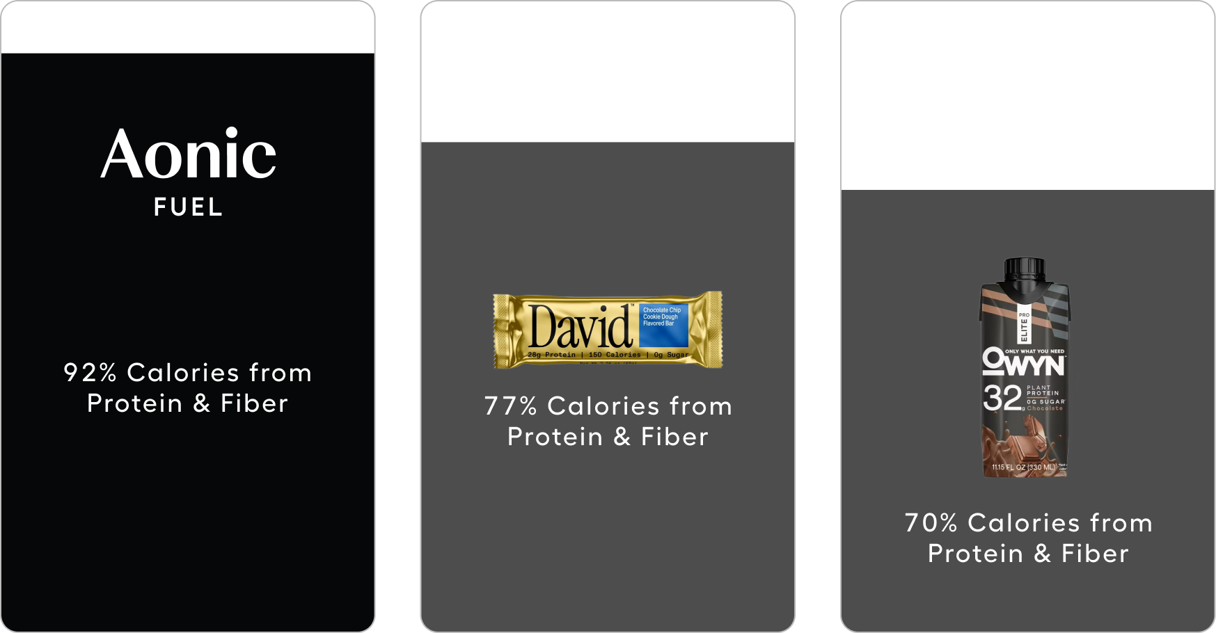Aonic Fuel is formulated with no artificial sweeteners and 0g added sugar. It’s made with real cocoa or vanilla, natural flavors, lactose-free milk protein, and includes 5g of fiber for satiety. Every ingredient is selected with purpose: to deliver clean, complete protein, better macros, and a satisfying taste without fillers, chalkiness, or bloating.