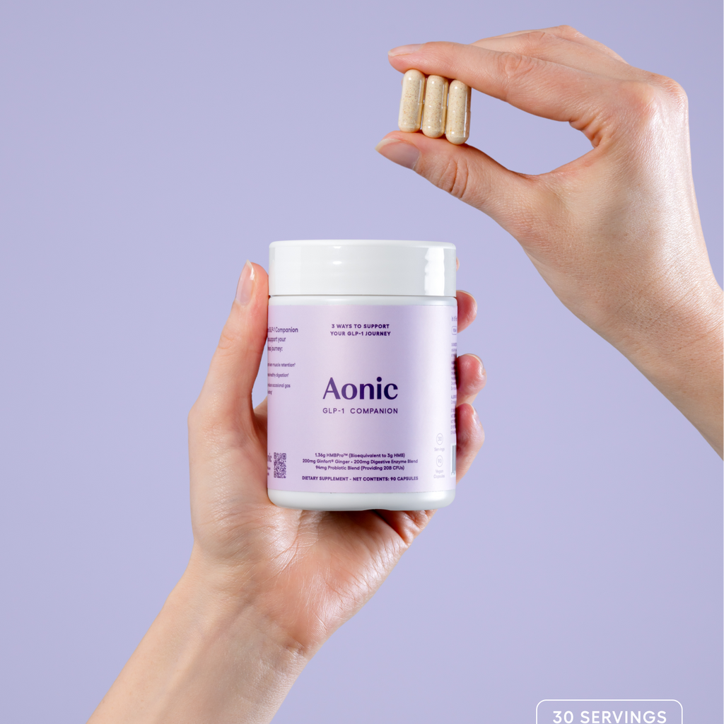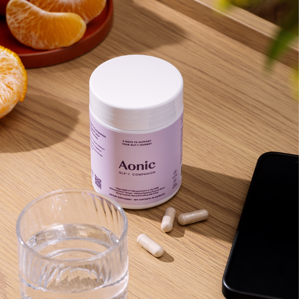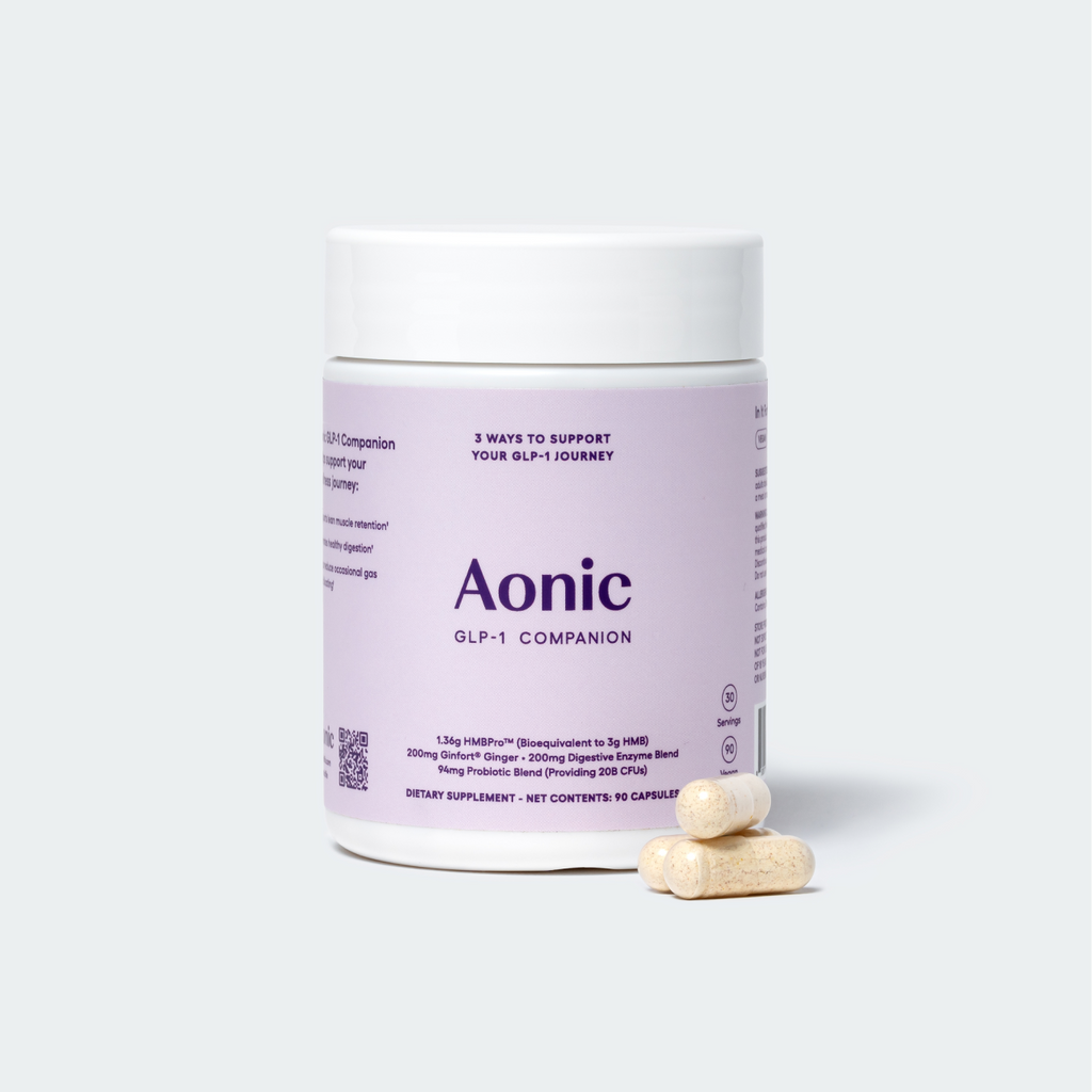 Aonic GLP‑1 Companion is a daily, science‑backed formula that helps support lean muscle mass and digestive comfort, designed for people using a GLP‑1 strategy for weight management.*