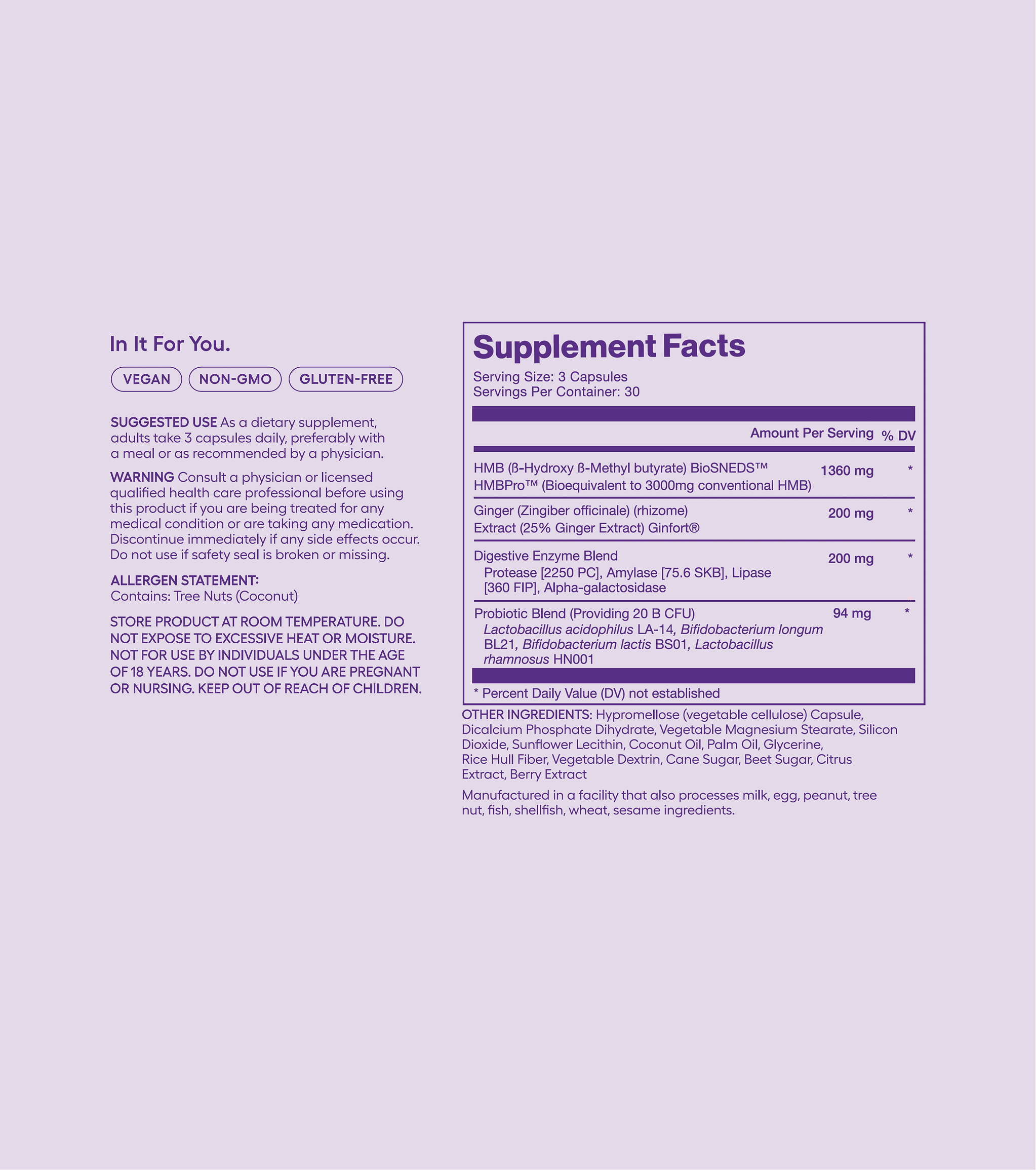 Featuring scientifically studied ingredients - HMB to support lean muscle, a probiotic and enzyme blend to help support digestion, and ginger extract to help reduce occasional nausea and bloating - it’s designed for the needs of people during weight management.*